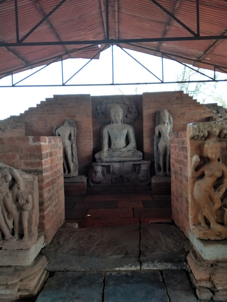 गर्भगृह में पश्चिम में निर्मित गर्भगृह (2.4 मीटर लंबा और 1.4 मीटर चौड़ा) में भगवान बुद्ध की एकात्म, भूमि स्पर्श मुद्रा में प्रतिमा स्थापित है। बुद्ध के अतिरिक्त गर्भगृह के सामने वाले मण्डप के चारों ओर लगभग 2.25 मीटर चौड़ा गलियारा है। इस विहार में जल निकासी के लिए प्रस्तर निर्मित भूमिगत नाली के अवशेष भी प्राप्त हुए हैं। इस विहार के कक्षों को कालांतर में लघु गर्भगृहों में परिवर्तन पश्चात विहार के दक्षिण दिशा की ओर विस्तार किया गया तथा अनेक नवीन कक्षों का निर्माण किया गया तथा पूर्व की अपेक्षा एक अन्य बड़े मण्डप का (12.5 मीटर लंबा और 9 मीटर चौड़ा) भी निर्माण किया गया तथा चारों ओर 36 मीटर लम्बा एवं 1.5 मीटर चौड़ा गलियारा है। यह मण्डप 10 स्तंभों पर आधारित था। उत्खनन कर्ता द्वारा इसके दो मंजिला होने का अनुमान किया गया है।